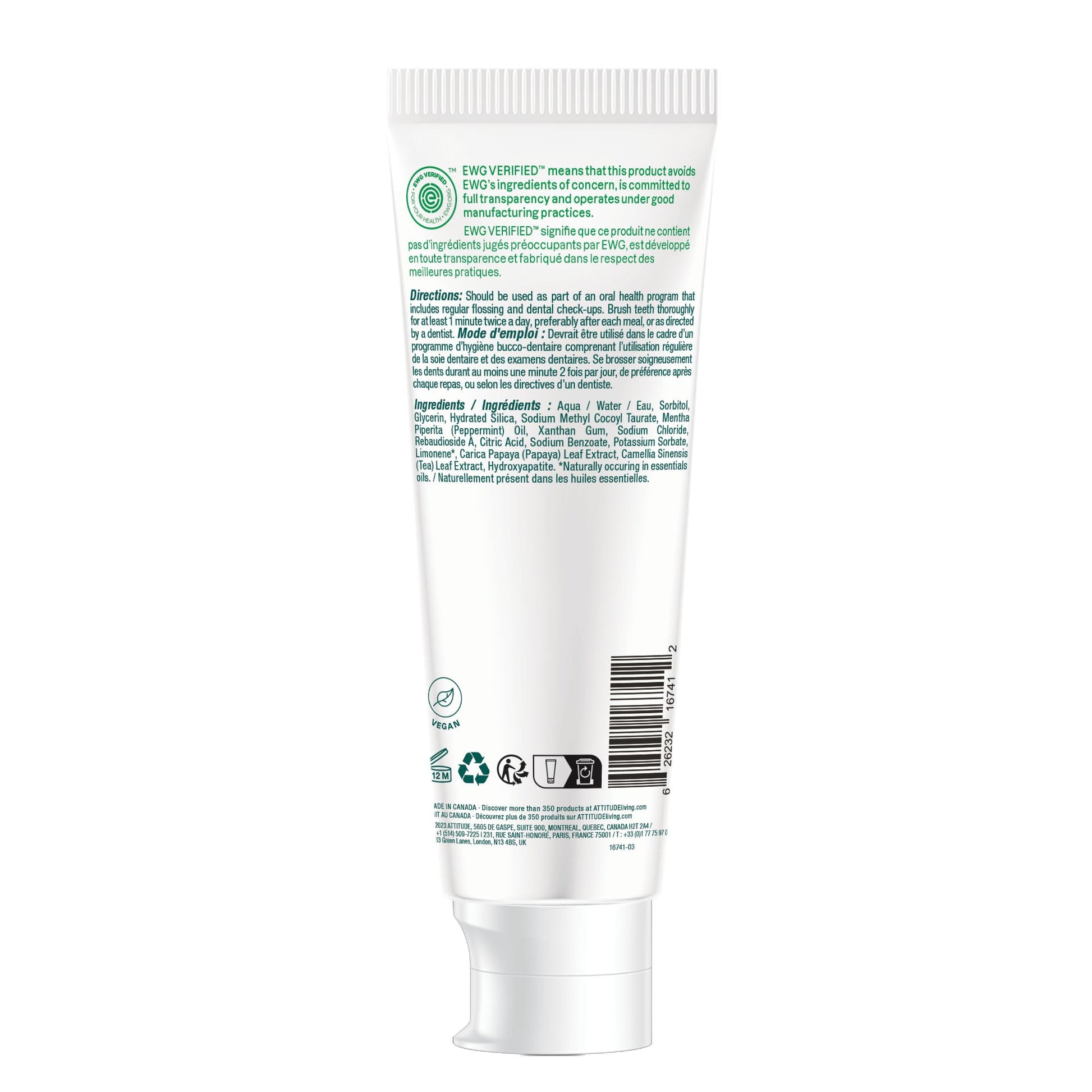 Say goodbye to discomfort and sensitivity thanks to the ATTITUDE’s Fluoride Free Adult Toothpaste — Sensitive, specially formulated for sensitive gums and teeth. This toothpaste will soothe dental nerves for lasting sensitivity relief when regularly used thanks to potassium nitrate a mineral -based active added to our formula. EWG VERIFIED™️, fluoride-free and vegan, it will leave your breath feeling minty fresh. Plus, it comes in a tube and no unnecessary packaging cardboard box, a more sustainable alternative to traditional toothpaste. Brush away and smile proudly!