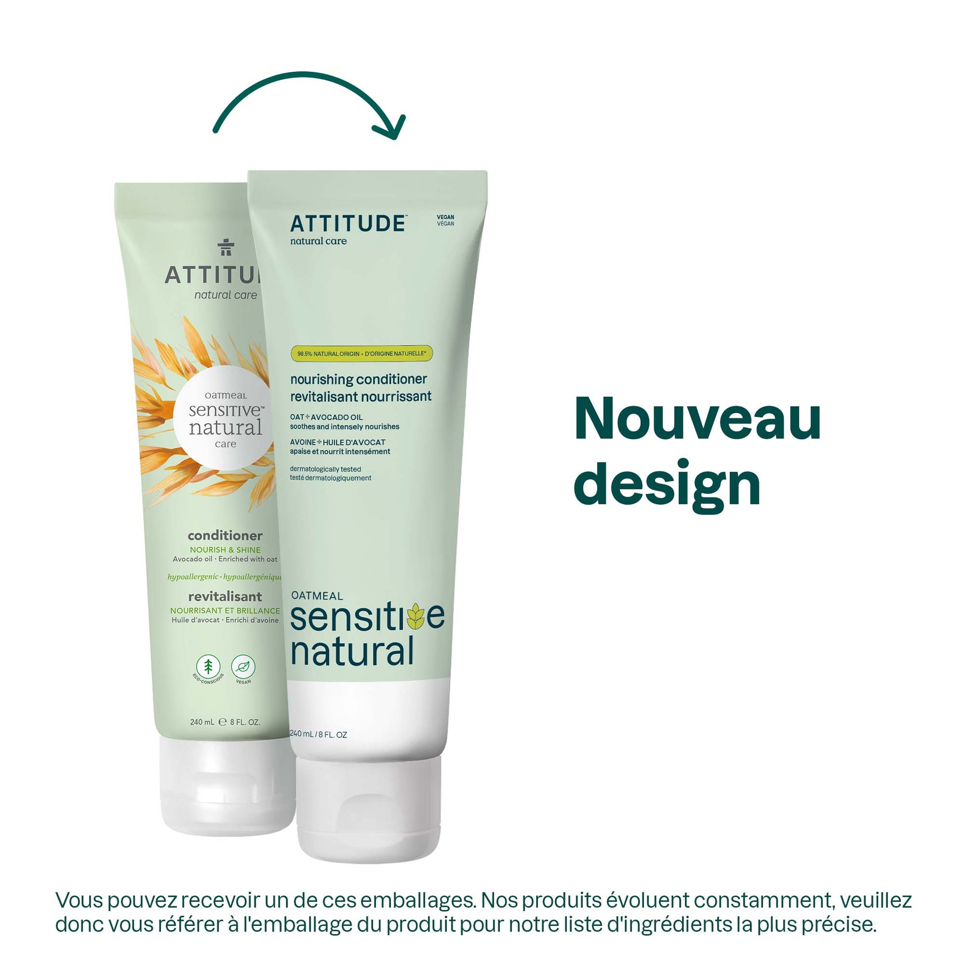 ATTITUDE’s Nourish & Shine Natural Conditioner is enhanced with soothing oatmeal and moisturizing avocado oil ingredients, leaving your hair soft and supple.